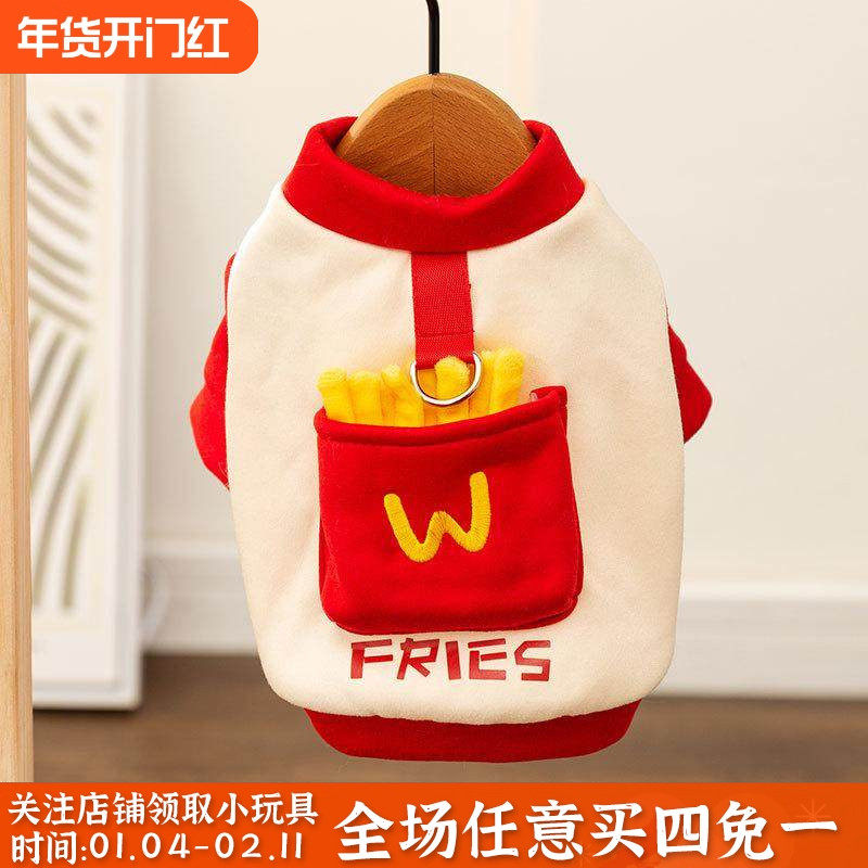 可爱小狗狗衣服口袋薯条牵引猫咪卫衣中小型犬泰迪比熊博美两脚衣