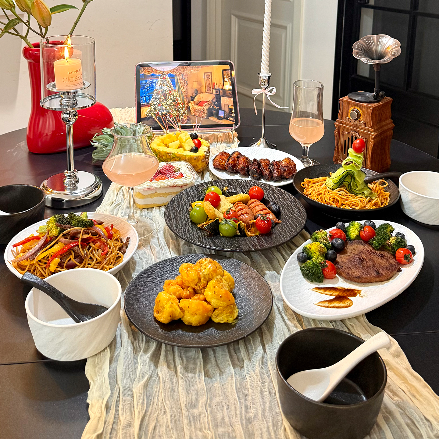 简约现代碗碟套装家用2025新款陶瓷餐具釉下彩碗具高颜值乔迁礼物