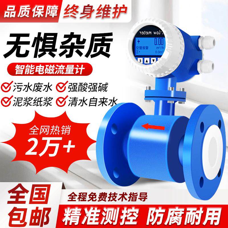 电磁流量计污水液体酸碱电子数显一体管道高精度传感器防腐智能DN