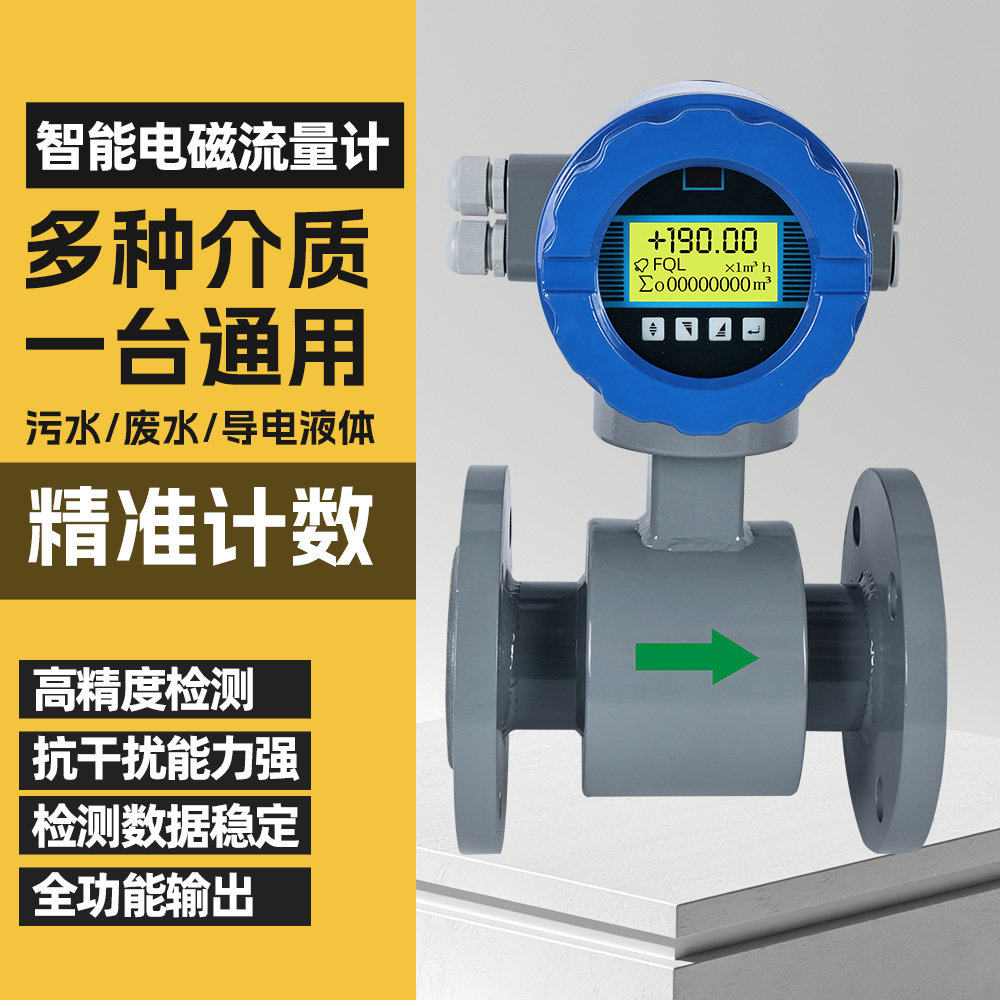 智能电磁流量计污水管道酸碱电子数显一体式高精度传感器液体水表