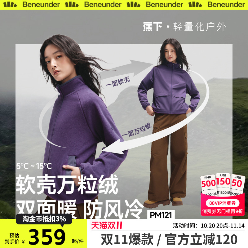 蕉下双面穿万粒绒外套女秋新款立领户外抓绒衣摇粒绒焦下防风外套