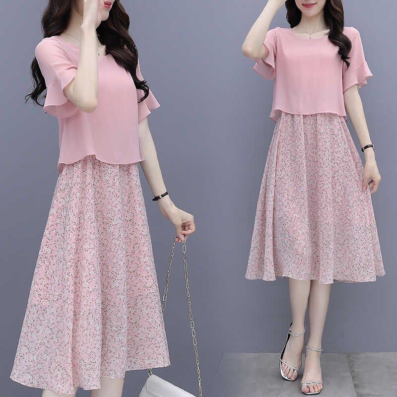 胖妹妹两件套装裙洋气大码女装雪纺连衣裙200斤加肥加大网纱裙夏