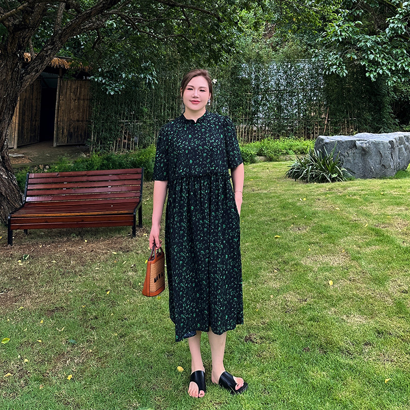 大码五分袖气质减龄女人味胖妹妹连衣裙夏季2024新款碎花雪纺长裙
