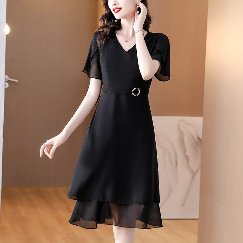 设计感碎花雪纺短袖夏季连衣裙2024年新款高级感大码胖妹妹显瘦
