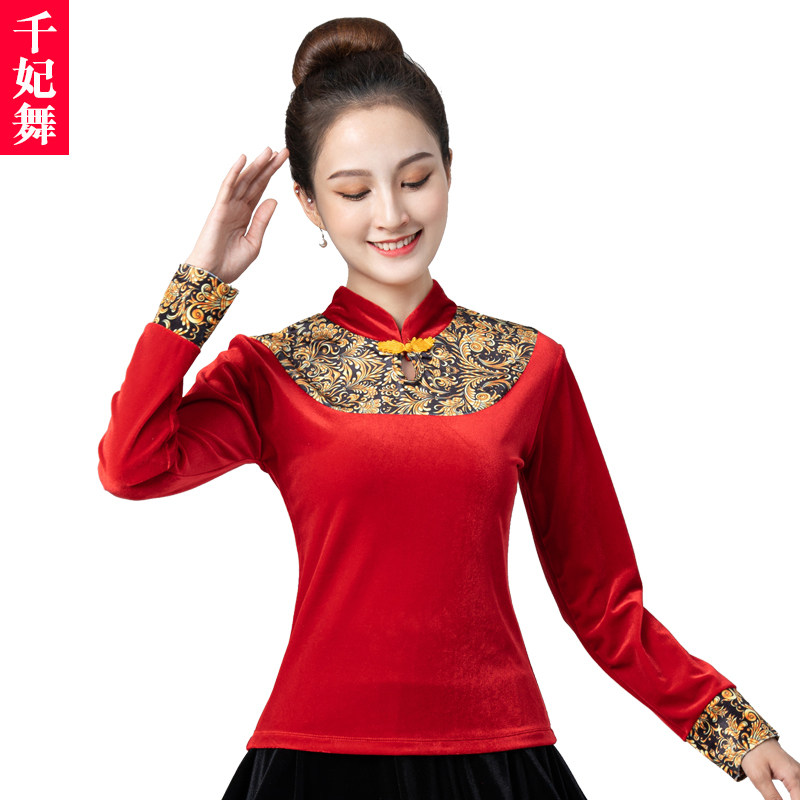 广场舞服装上衣冬装新款金丝绒舞蹈服长袖伞舞表演服中老年跳舞衣