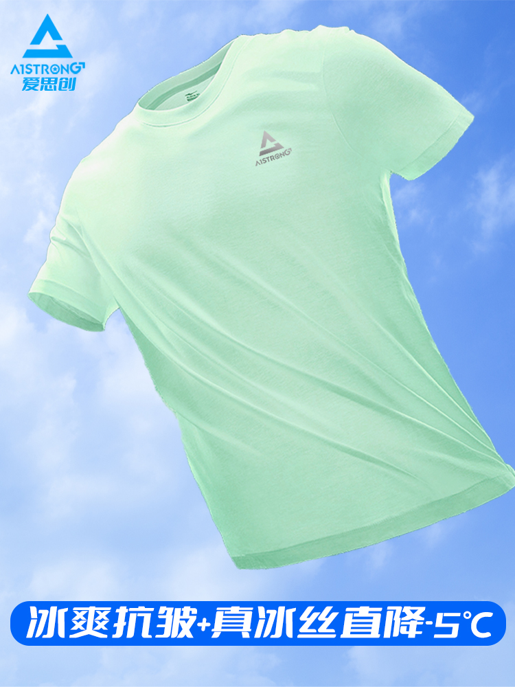 爱思创水晶冰丝男女速干T恤冰爽高弹吸汗透气跑步登山舞蹈快干衣