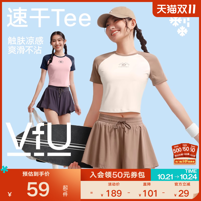 VfU速干运动上衣女凉感健身服瑜伽普拉提户外短袖T恤紧身短款插肩