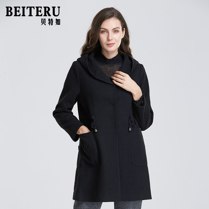 贝特如专柜正品冬新款中年连帽外套女收腰妈妈装中长款毛呢大衣YJ