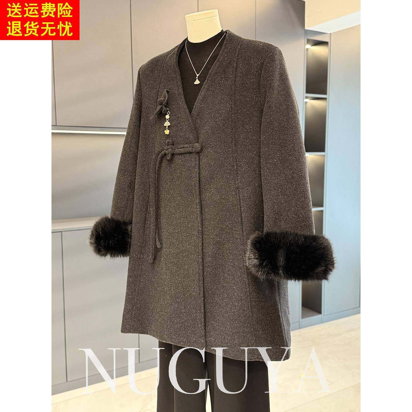 中式妈妈装双面羊绒大衣女秋冬高贵中老年人婚宴羊毛呢外套中长款
