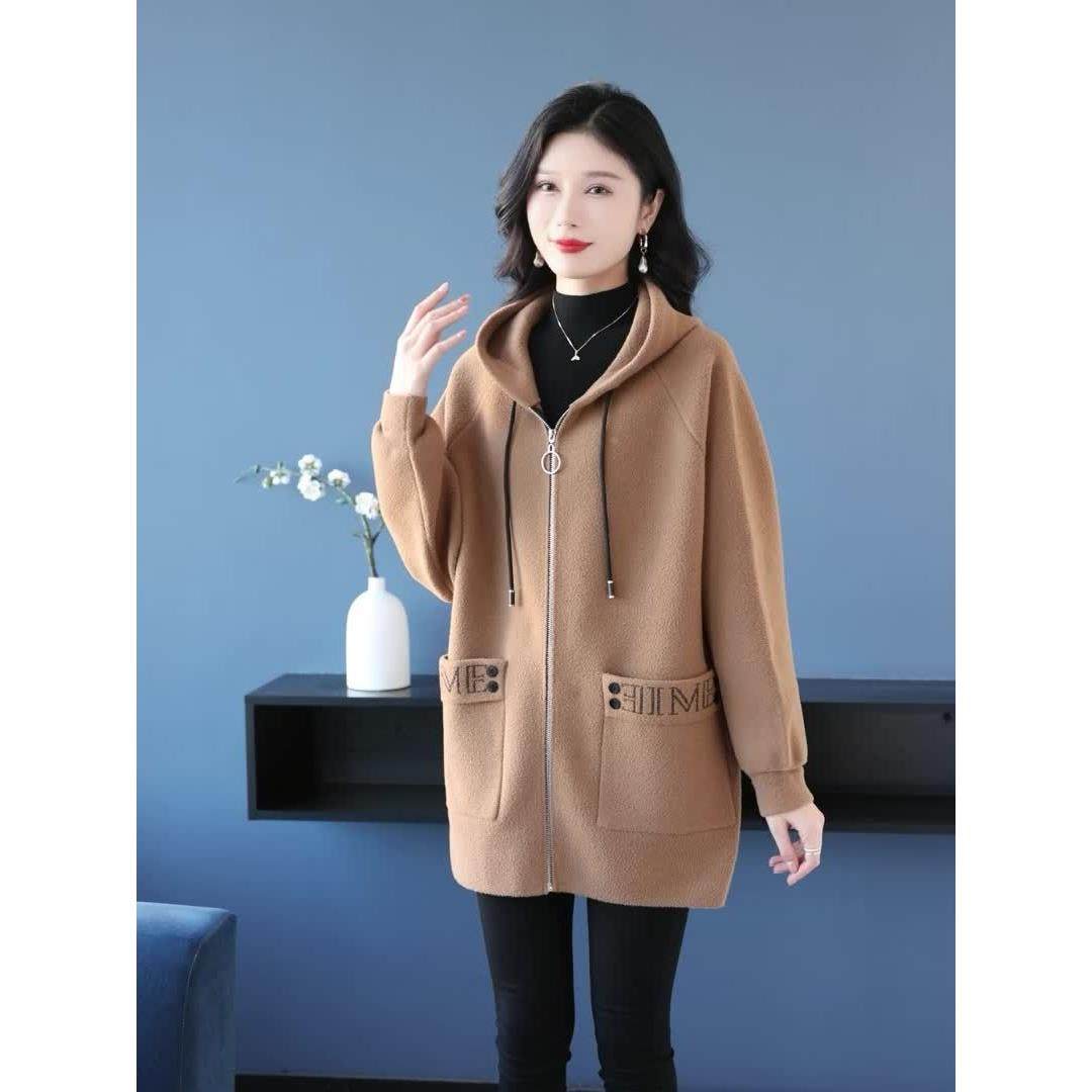 中老年女装妈妈羊羔毛加绒加厚上衣年轻妈妈中长款羊剪绒毛呢外套