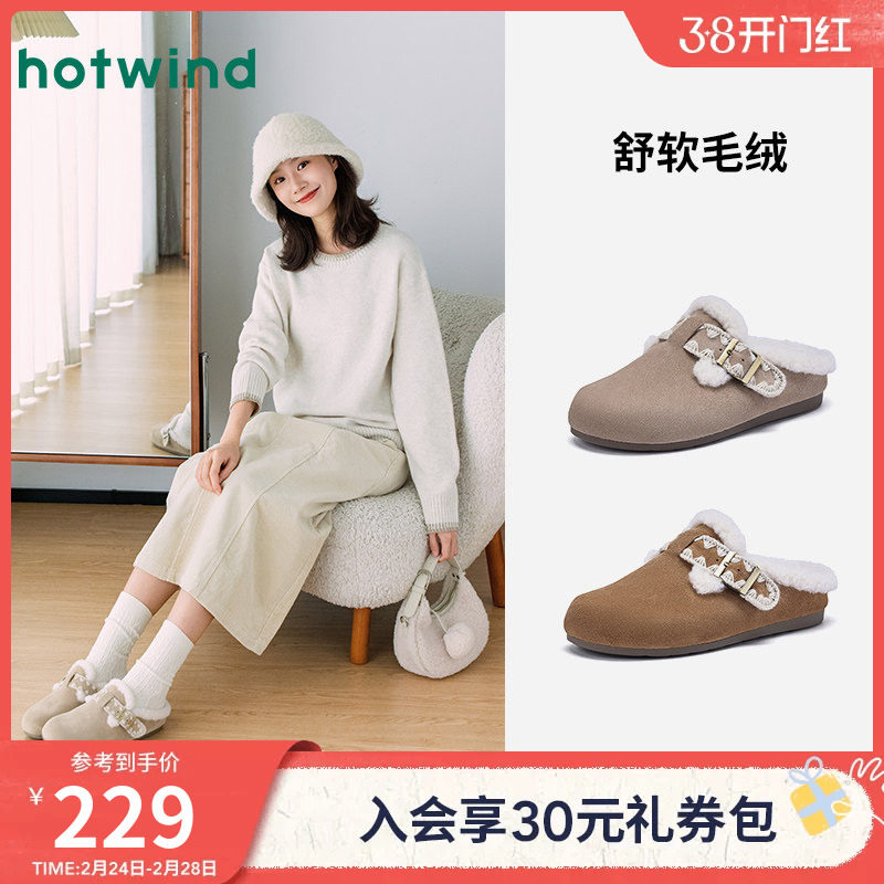 热风加绒勃肯鞋女2025年冬季新款复古毛毛鞋百搭包头拖休闲雪地靴