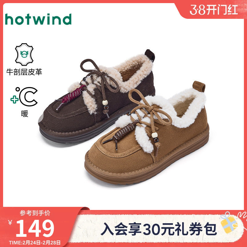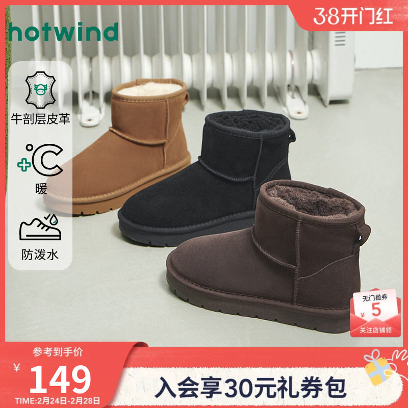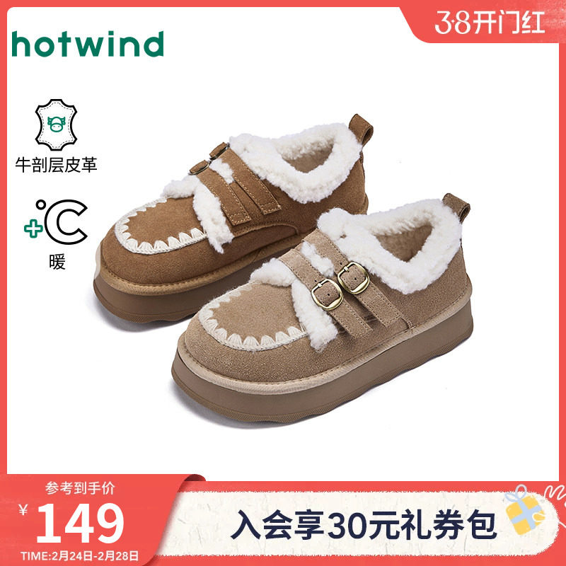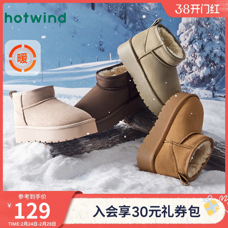 热风2025冬季新款女士加绒加厚休闲雪地靴短筒时尚棉鞋百搭面包鞋