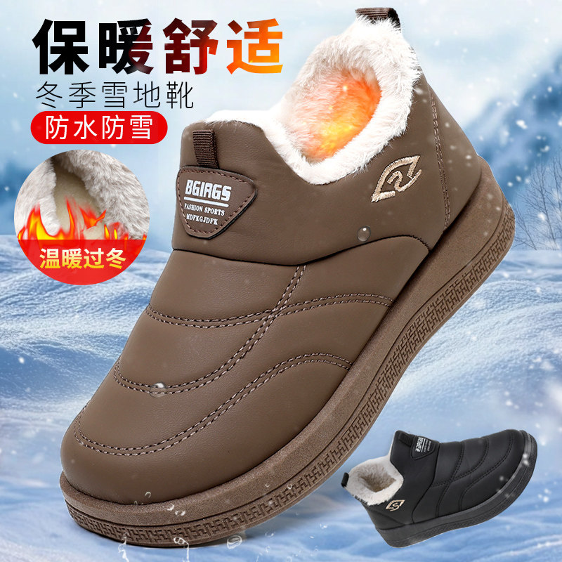 老北京布鞋冬老人棉鞋男加绒保暖羊毛鞋防滑防水休闲爸爸鞋雪地靴