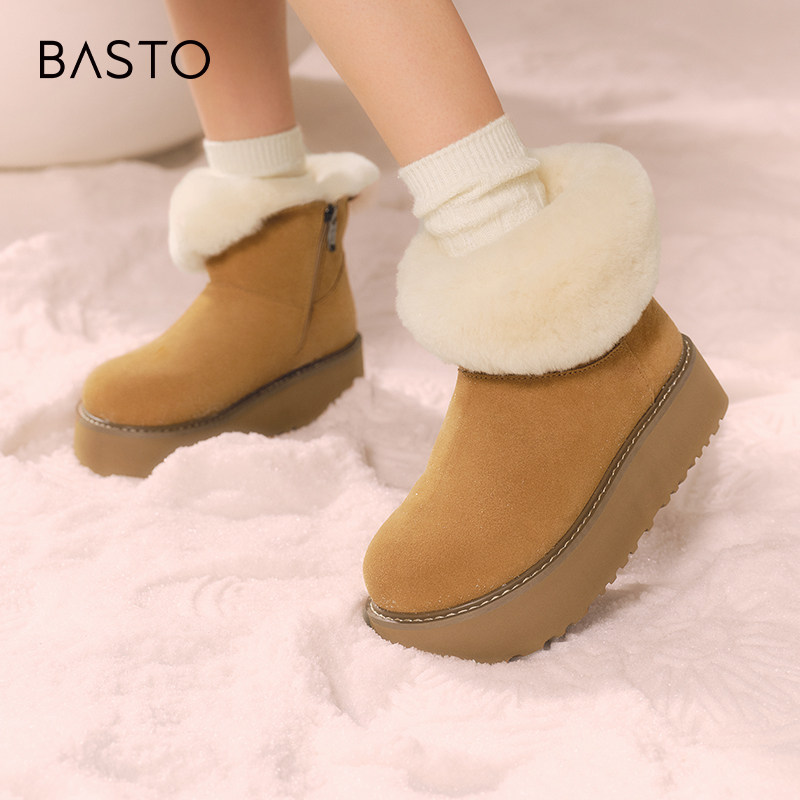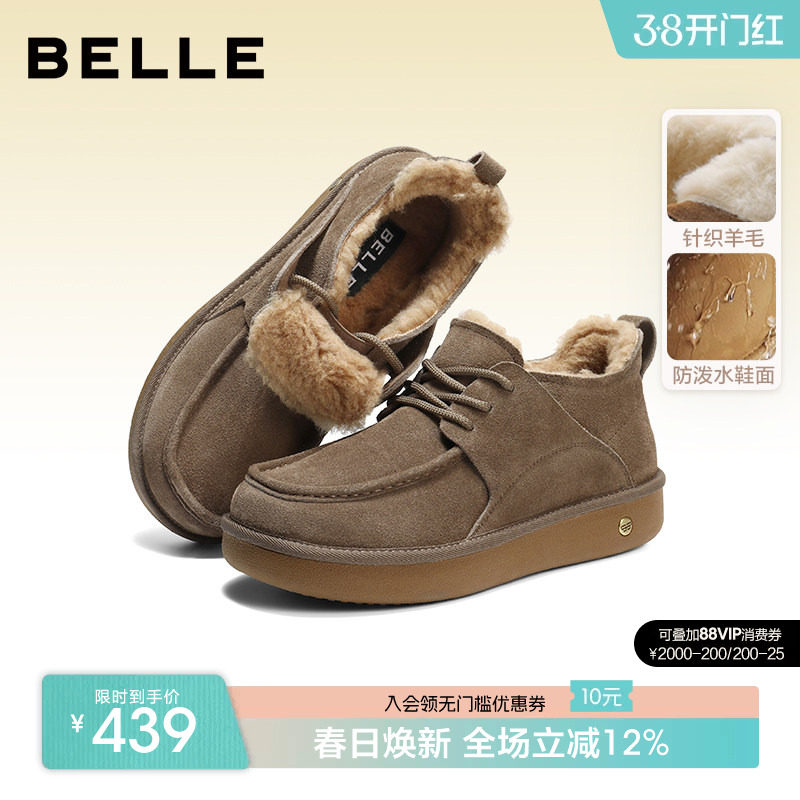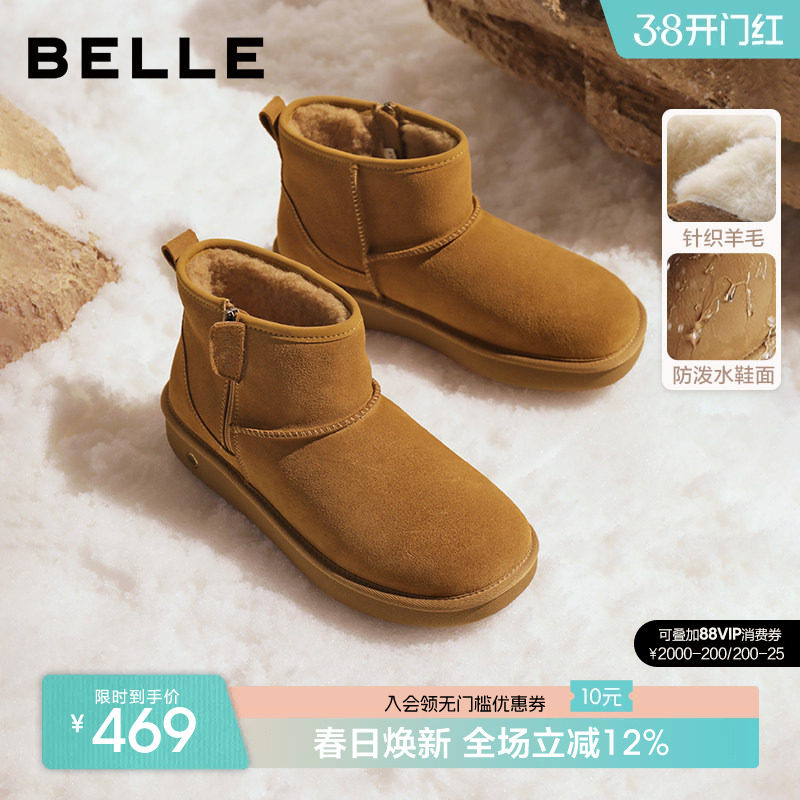 百思图冬季新款商场同款简约休闲雪地靴厚底女短靴L5228DD4