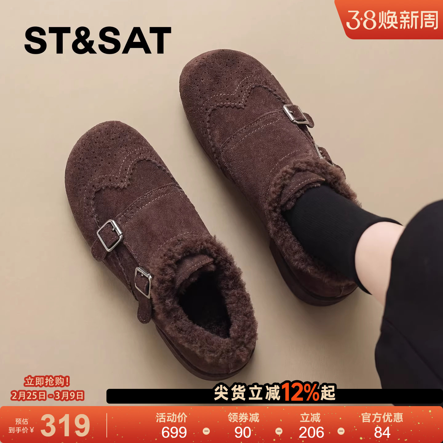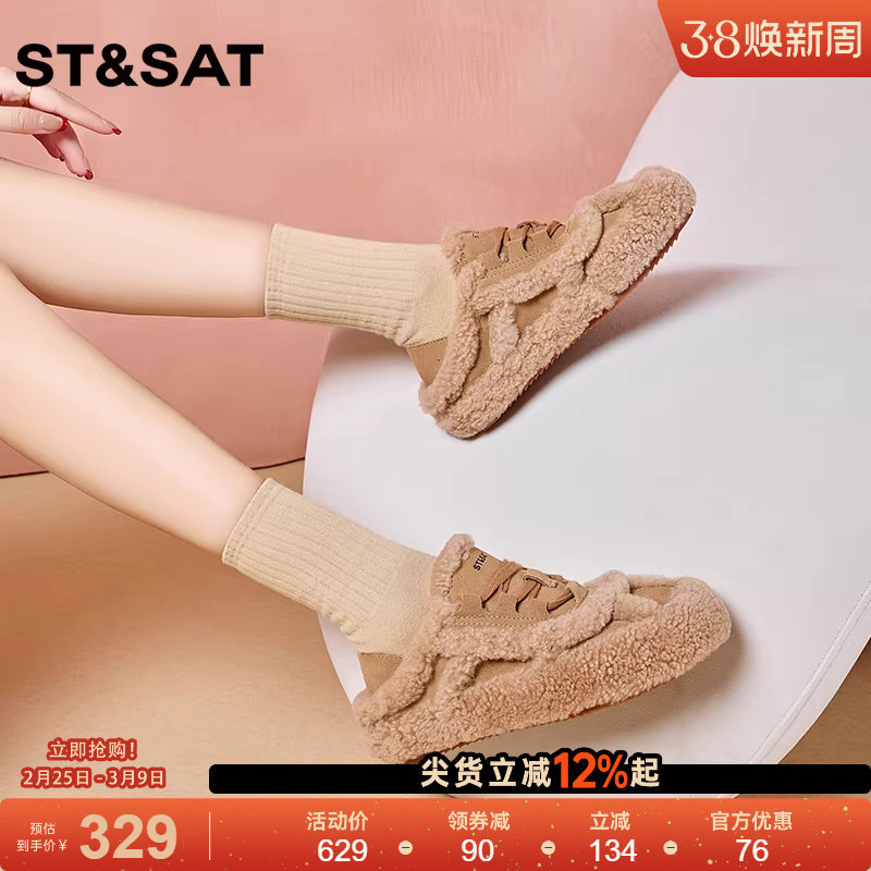 星期六真羊毛毛毛鞋女2025冬新款百搭舒适休闲雪地靴一脚蹬棉鞋ST