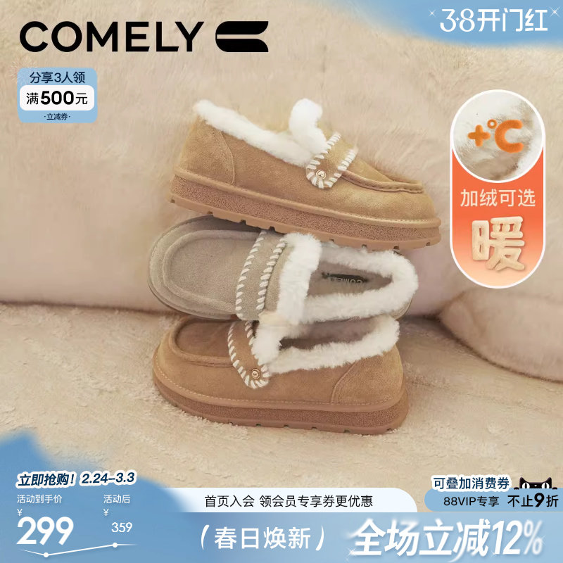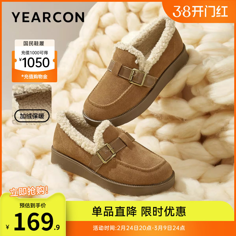 娇彤复古加绒勃肯鞋女款2025冬天新款厚底棉鞋乐福鞋休闲雪地靴