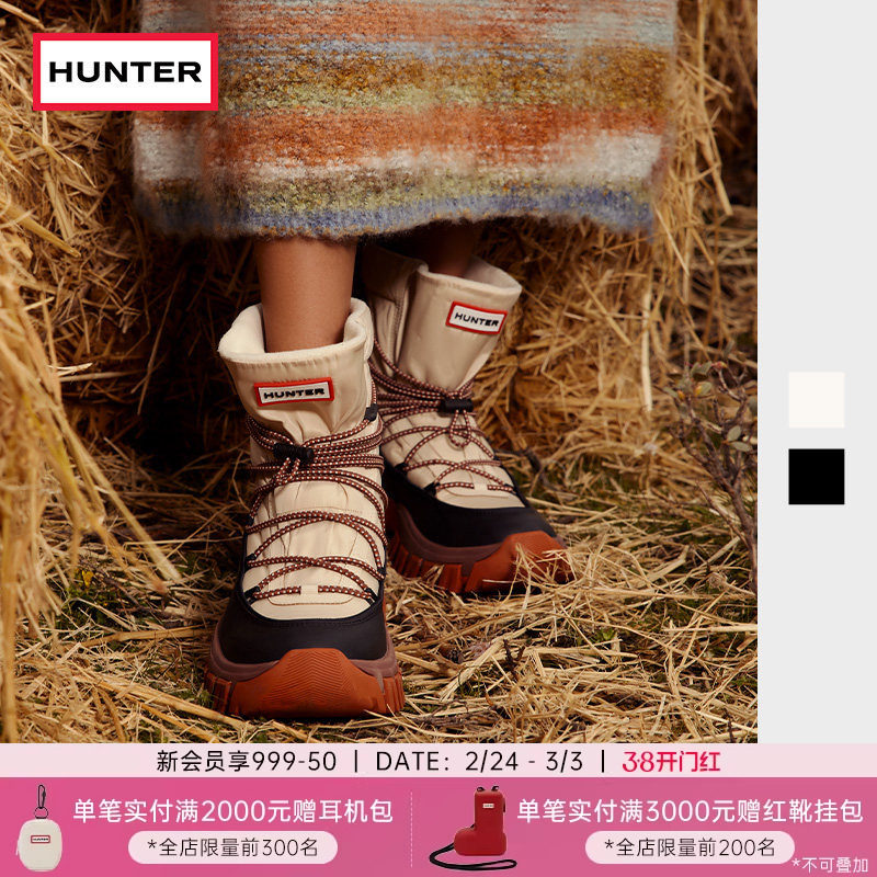 HUNTER女鞋秋冬系带户外靴休闲雪地靴加绒加厚防泼水防滑保暖靴女