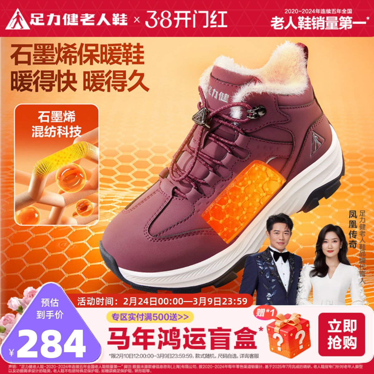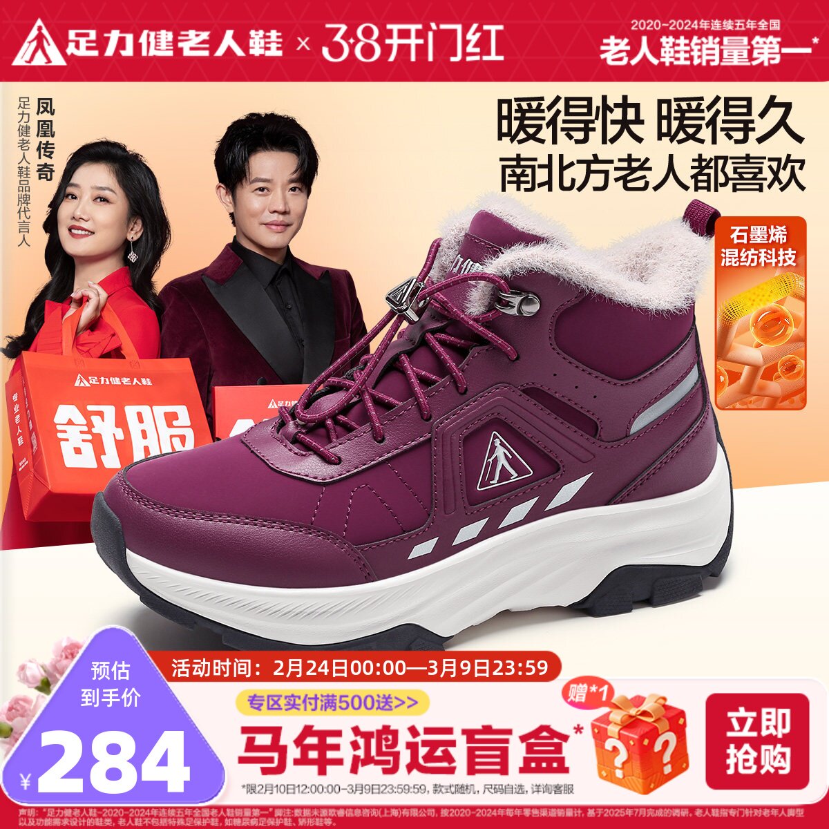 足力健旗舰店2025冬季棉鞋中老年妈妈鞋休闲雪地靴加绒加厚老人鞋