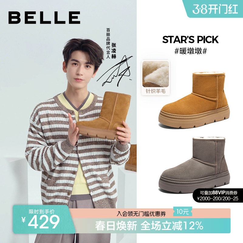 张凌赫同款百丽暖墩墩男士保暖休闲雪地靴男冬新加绒厚底东北靴子