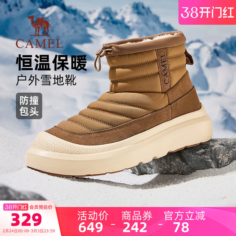 骆驼男鞋冬季加绒恒温保暖防撞防泼水增高厚底休闲雪地靴棉鞋男款