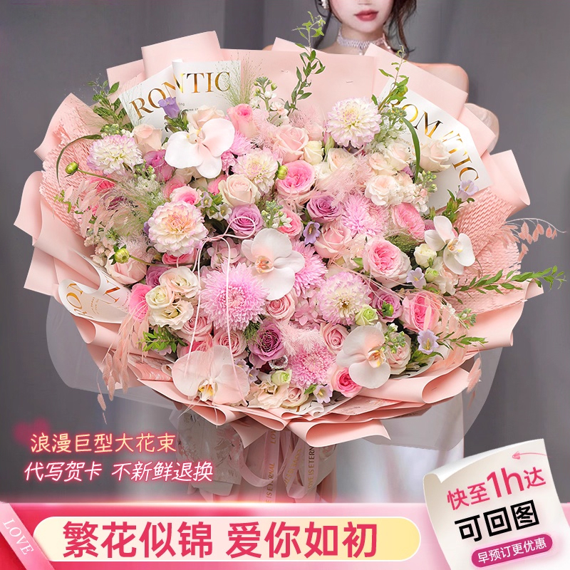 大花惠兰玫瑰花花束送女朋友上海鲜花速递同城送花小时达思南香山