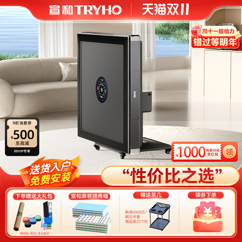 宣和全自动麻将机家用餐桌两用折叠静音四口机电动折叠麻将桌机麻