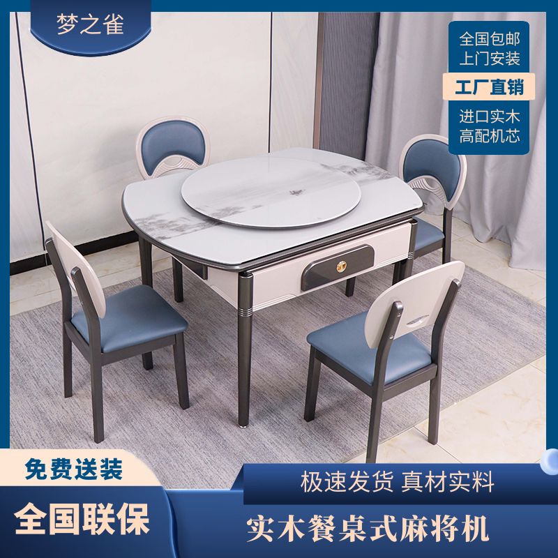 静音轻奢麻将机全自动餐桌两用实木机麻将桌一体家用折叠岩板圆桌