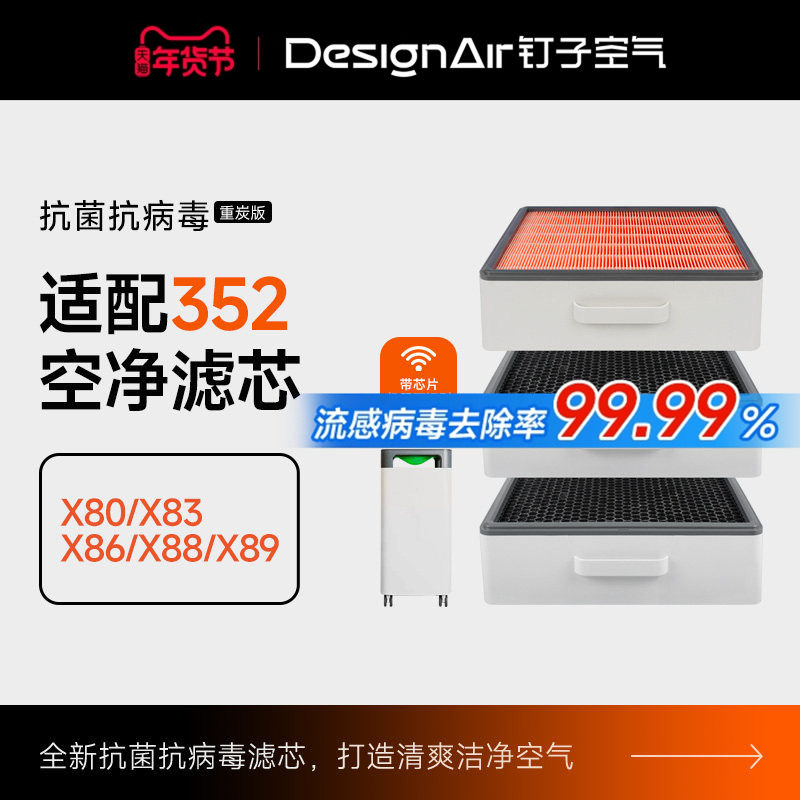 适配352空气净化器滤网X80/X83/X86/X88/C标准家用除醛过滤芯套装