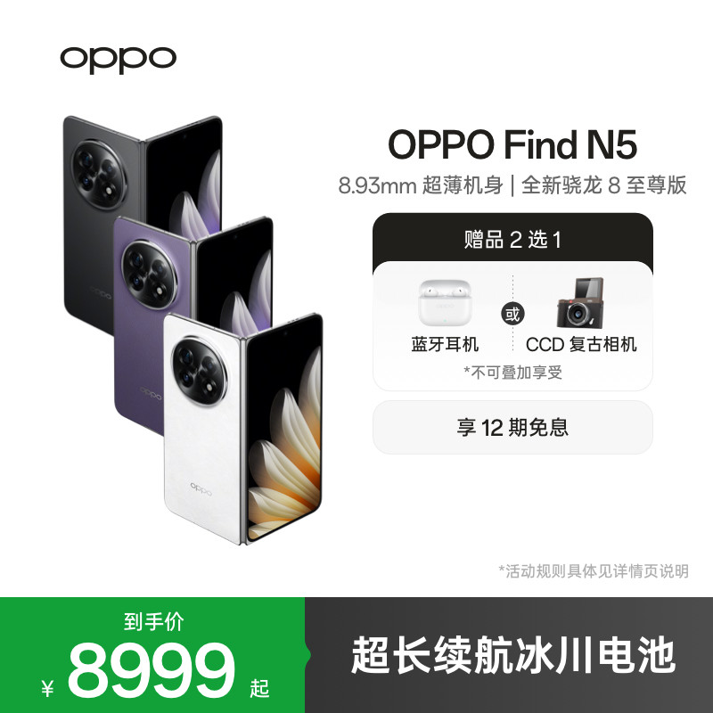 【阿里自营】OPPO Find N5 折叠旗舰手机 8.93mm超薄机身 超长续航冰川电池 全新骁龙8至尊版