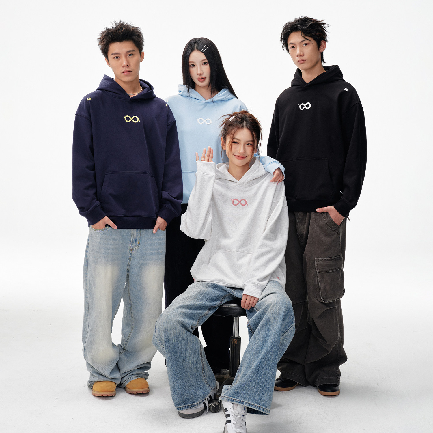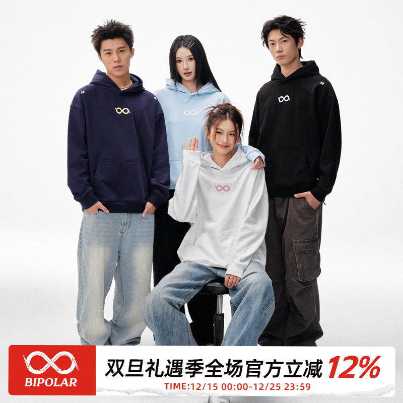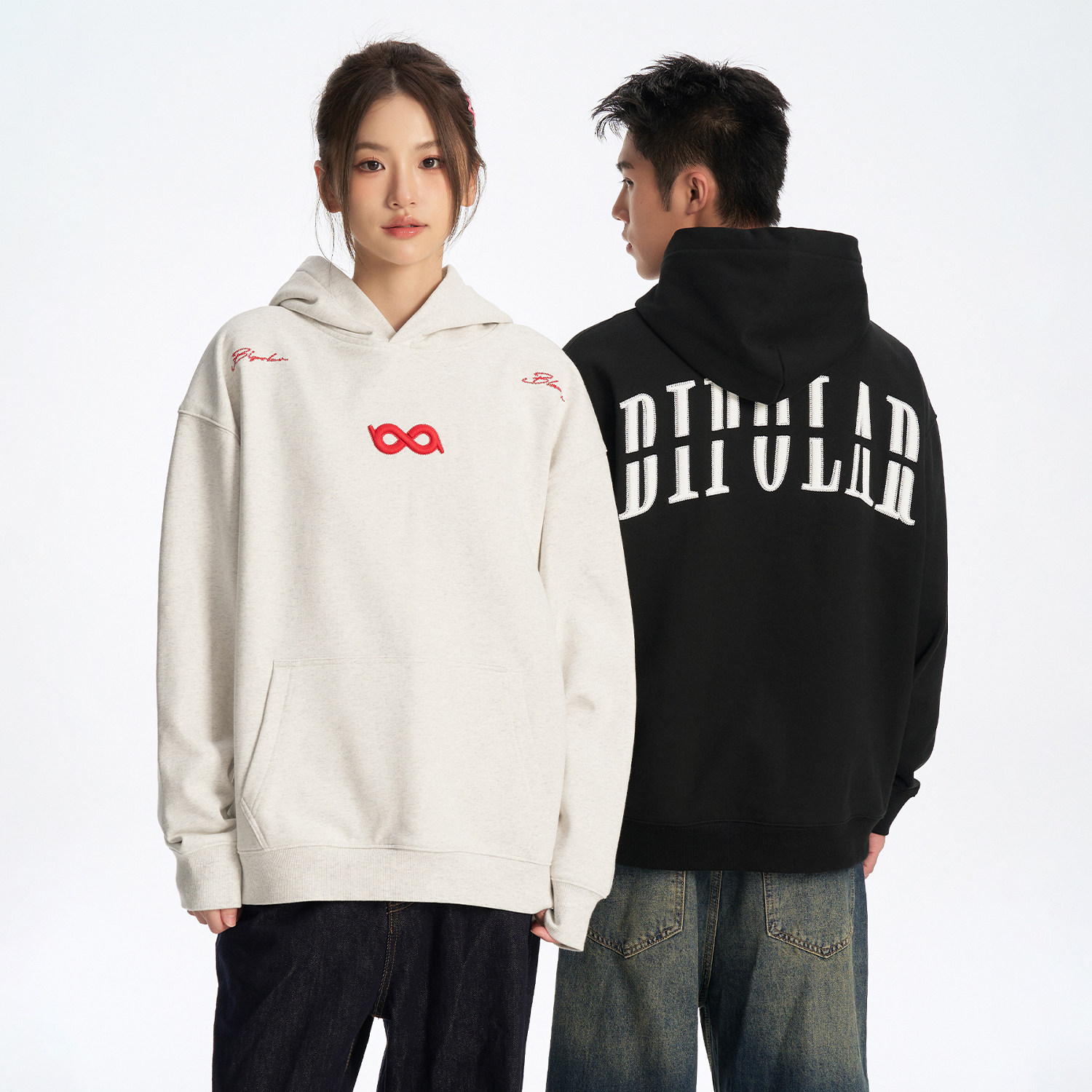 BIPOLAR 绣花无限环连帽卫衣美式重磅套头帽衫国潮牌男女同款情侣