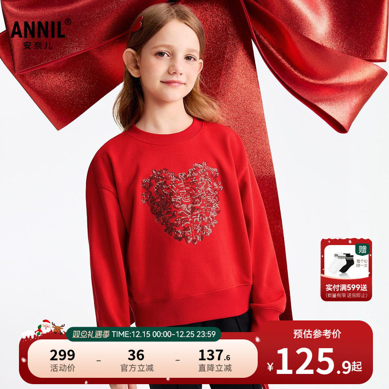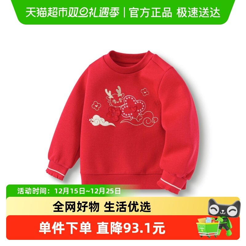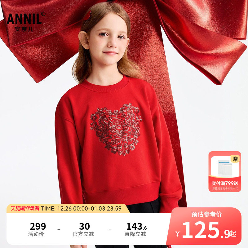 安奈儿童装女童圆领长袖卫衣2026春新年款中国风甜美绣花保暖弹力