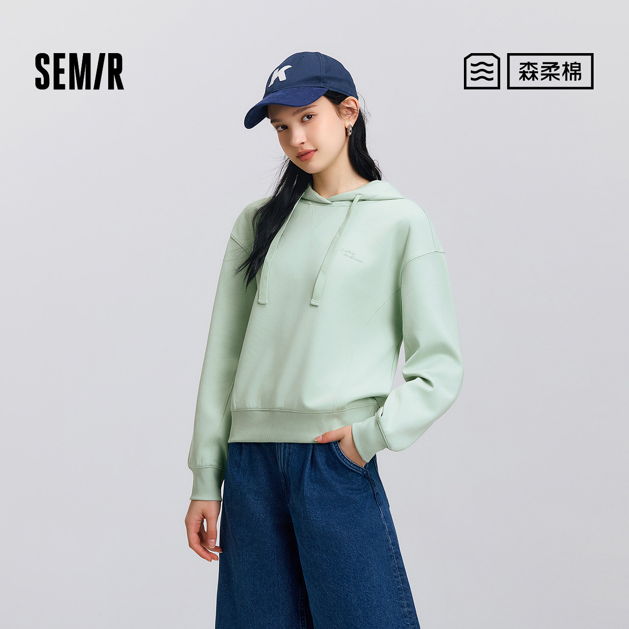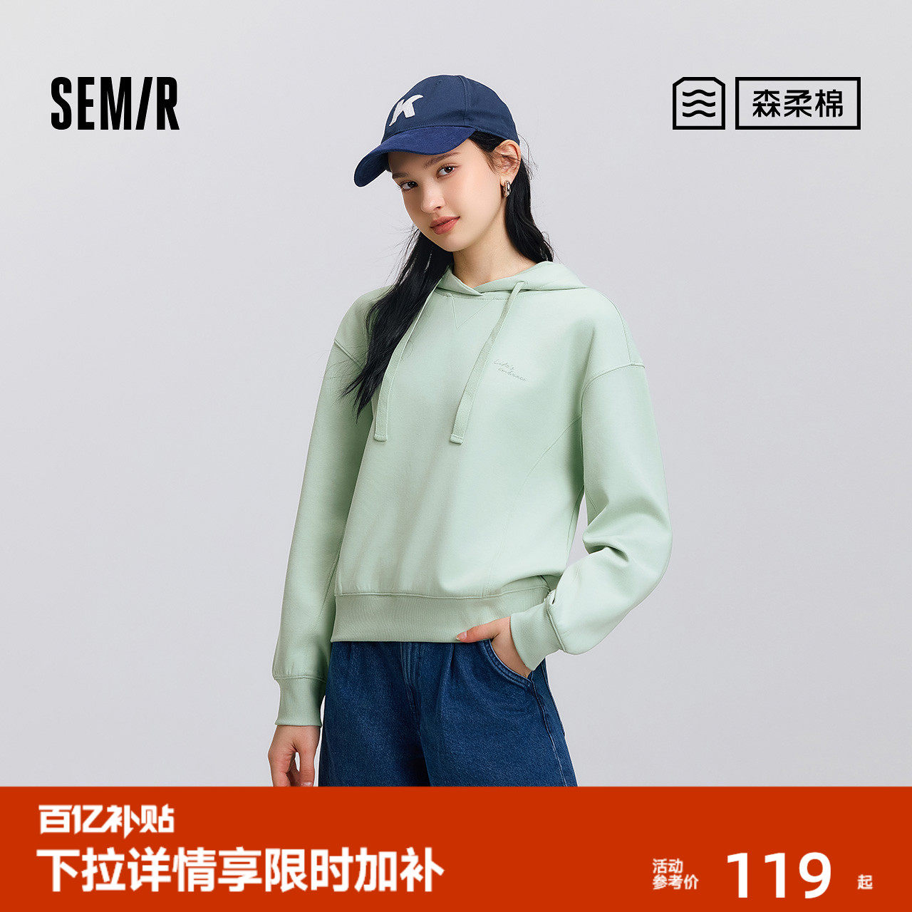 森柔棉|商场同款森马卫衣女绣花温柔春季2025新款宽松连帽套头衫