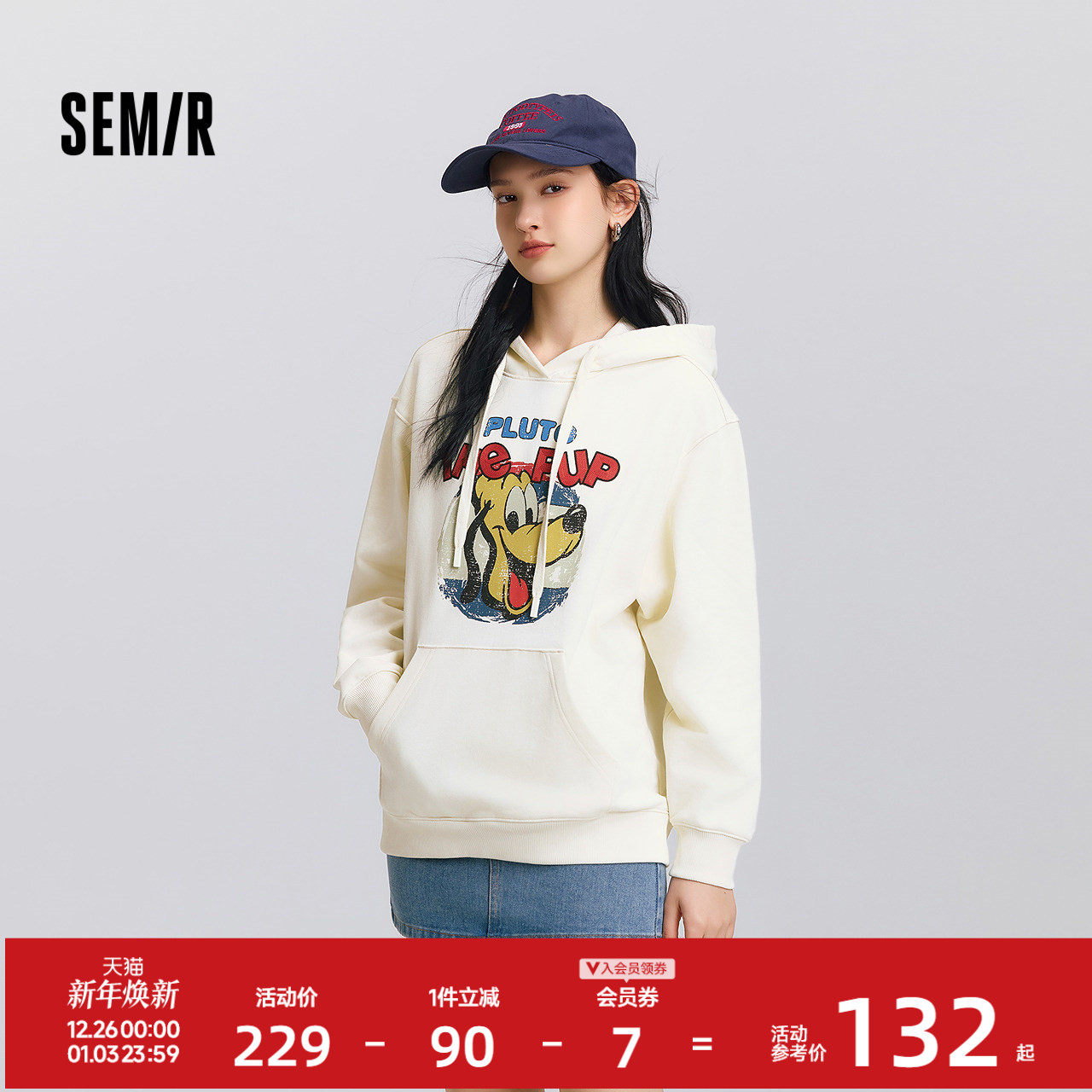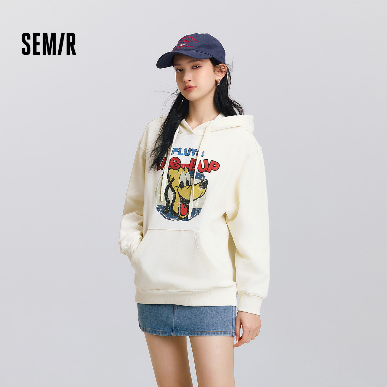 森马迪士尼合作系列卫衣女春中长款连帽宽松印花绣花炸街重磅上衣