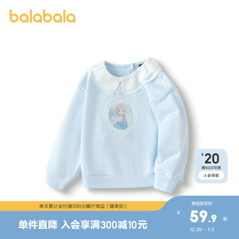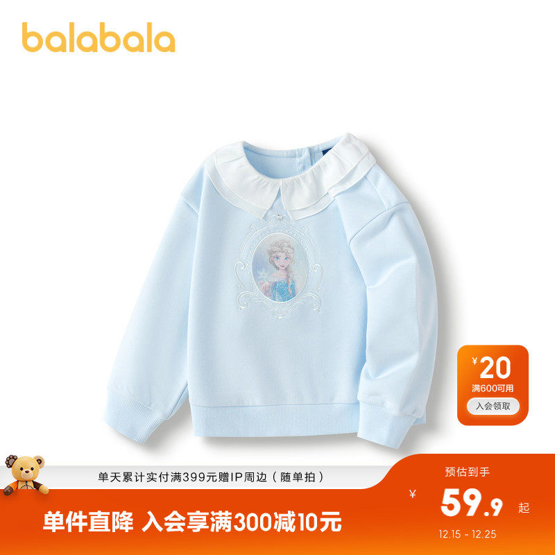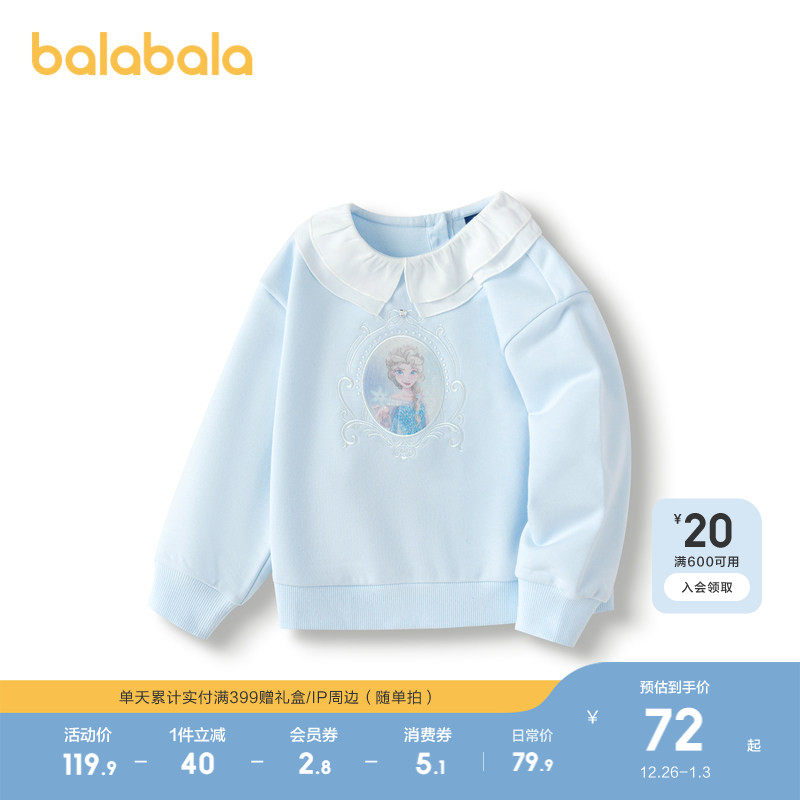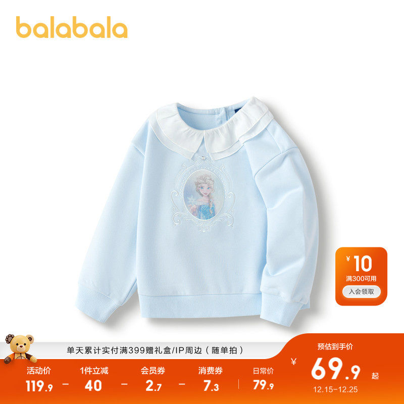 【艾莎IP】巴拉巴拉童装女童卫衣秋装款上衣绣花甜美翻领时尚舒适