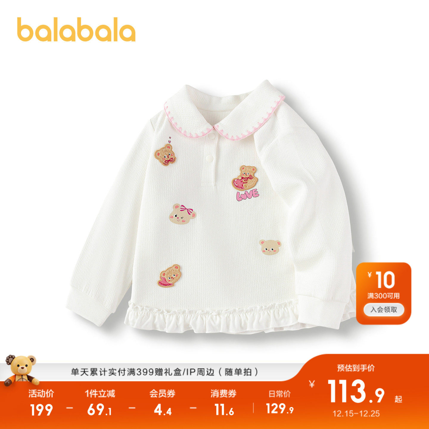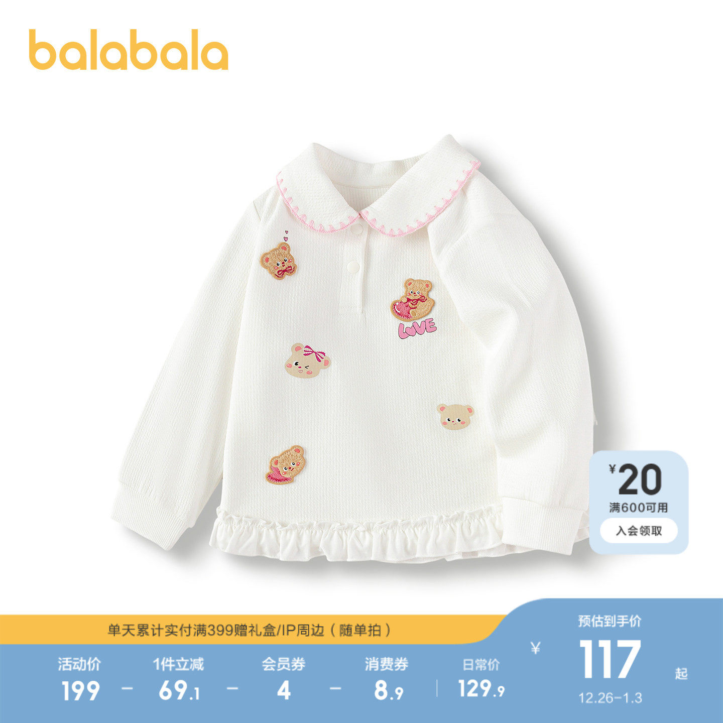 【商场同款】巴拉巴拉宝宝长袖卫衣女童秋装2025新款小熊绣花上衣