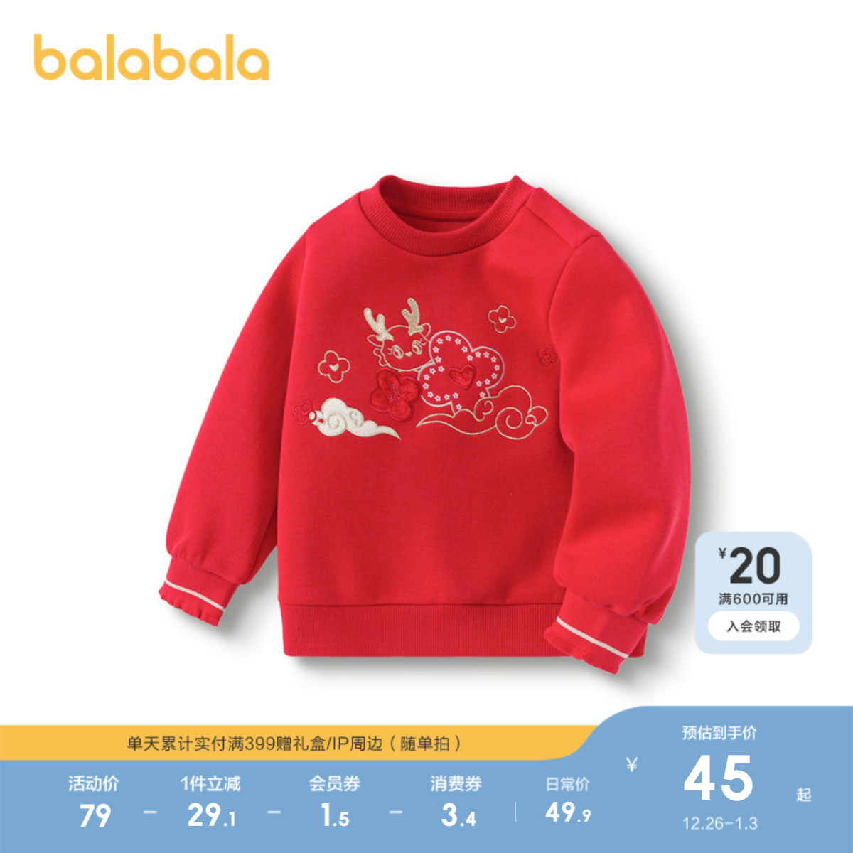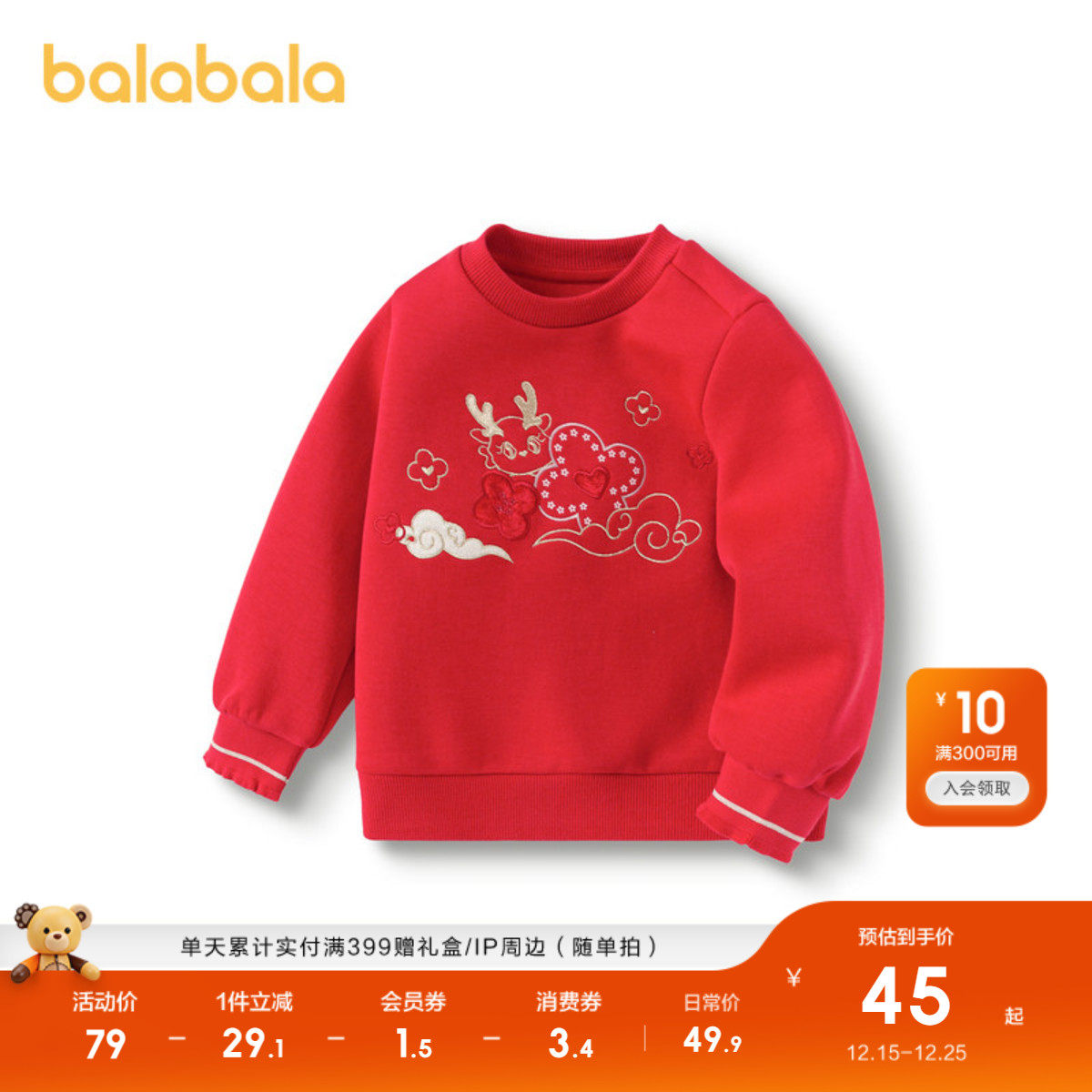 【无雪棉花娃娃】巴拉巴拉童装儿童卫衣女童冬装休闲上衣绣花甜美