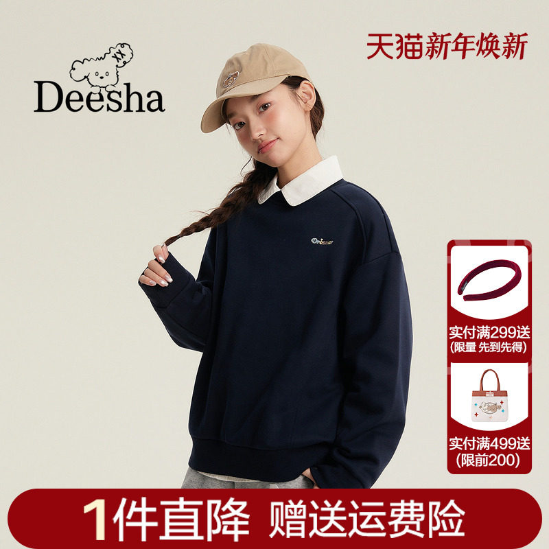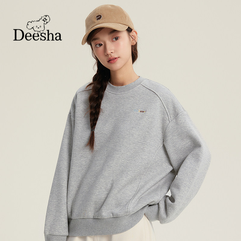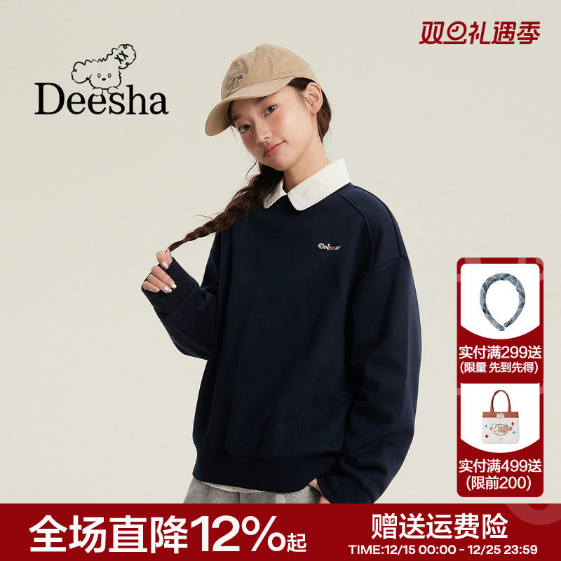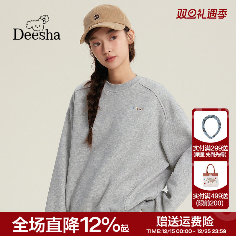 笛莎官旗青少年初高中女生上衣2025秋冬新款宽松立体绣花加绒卫衣