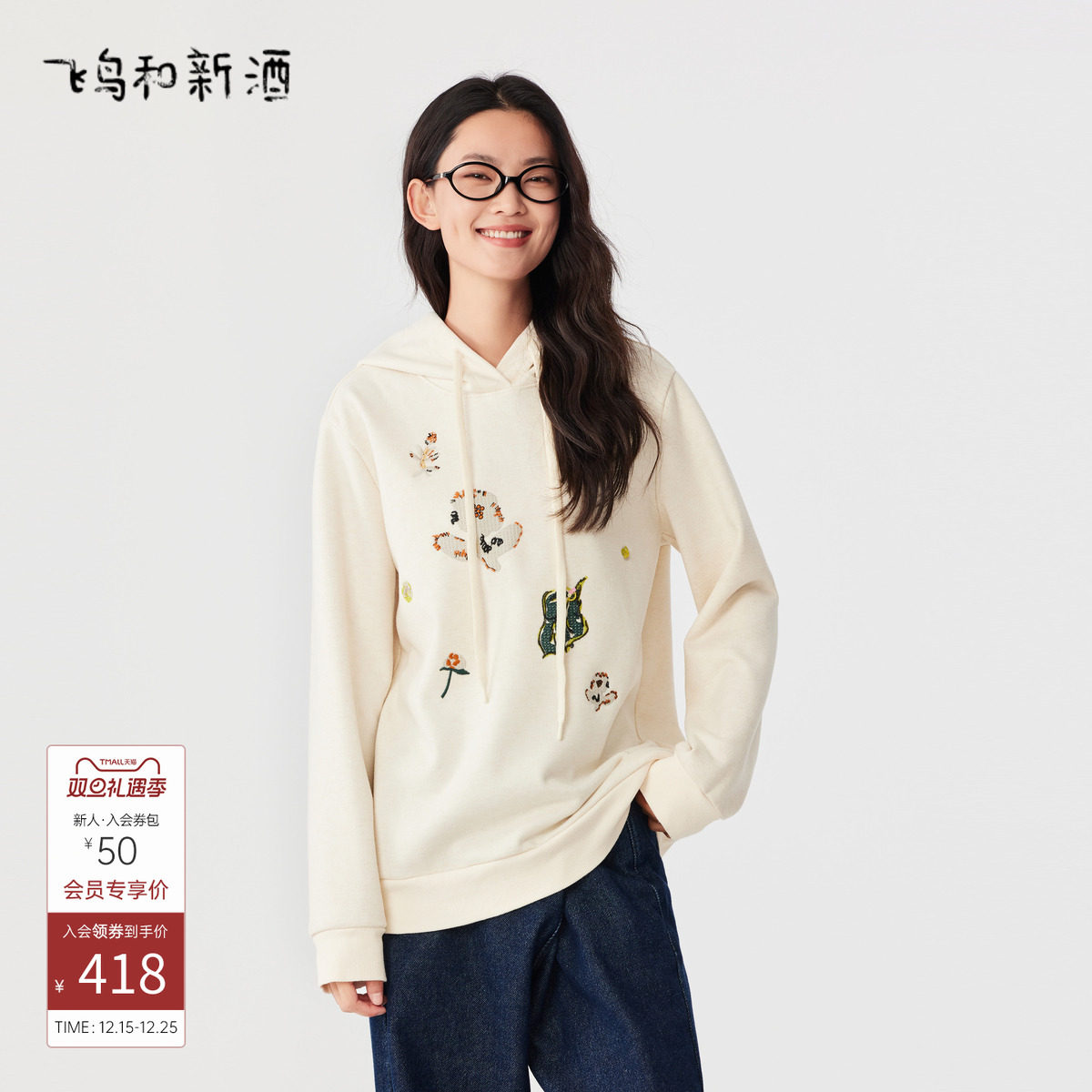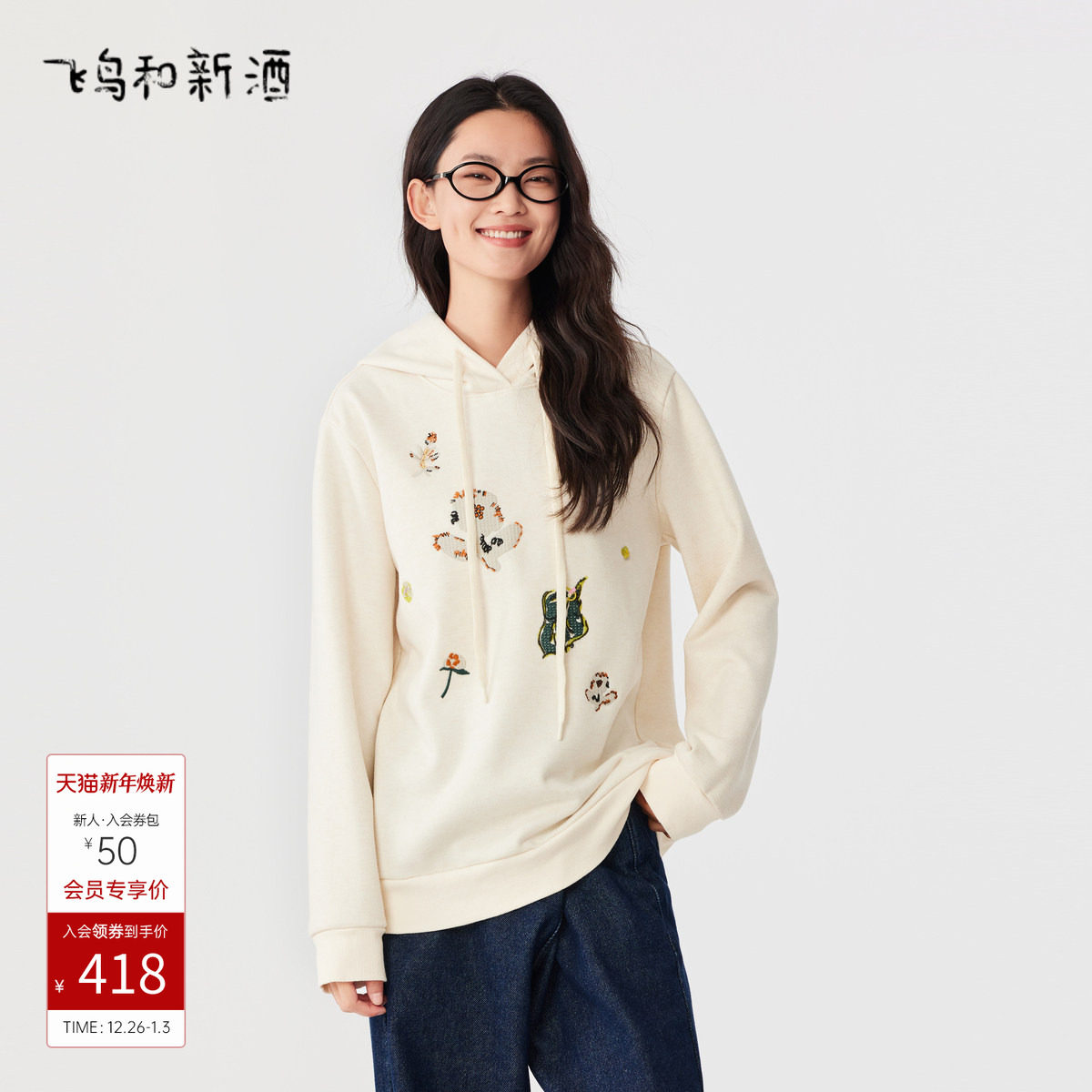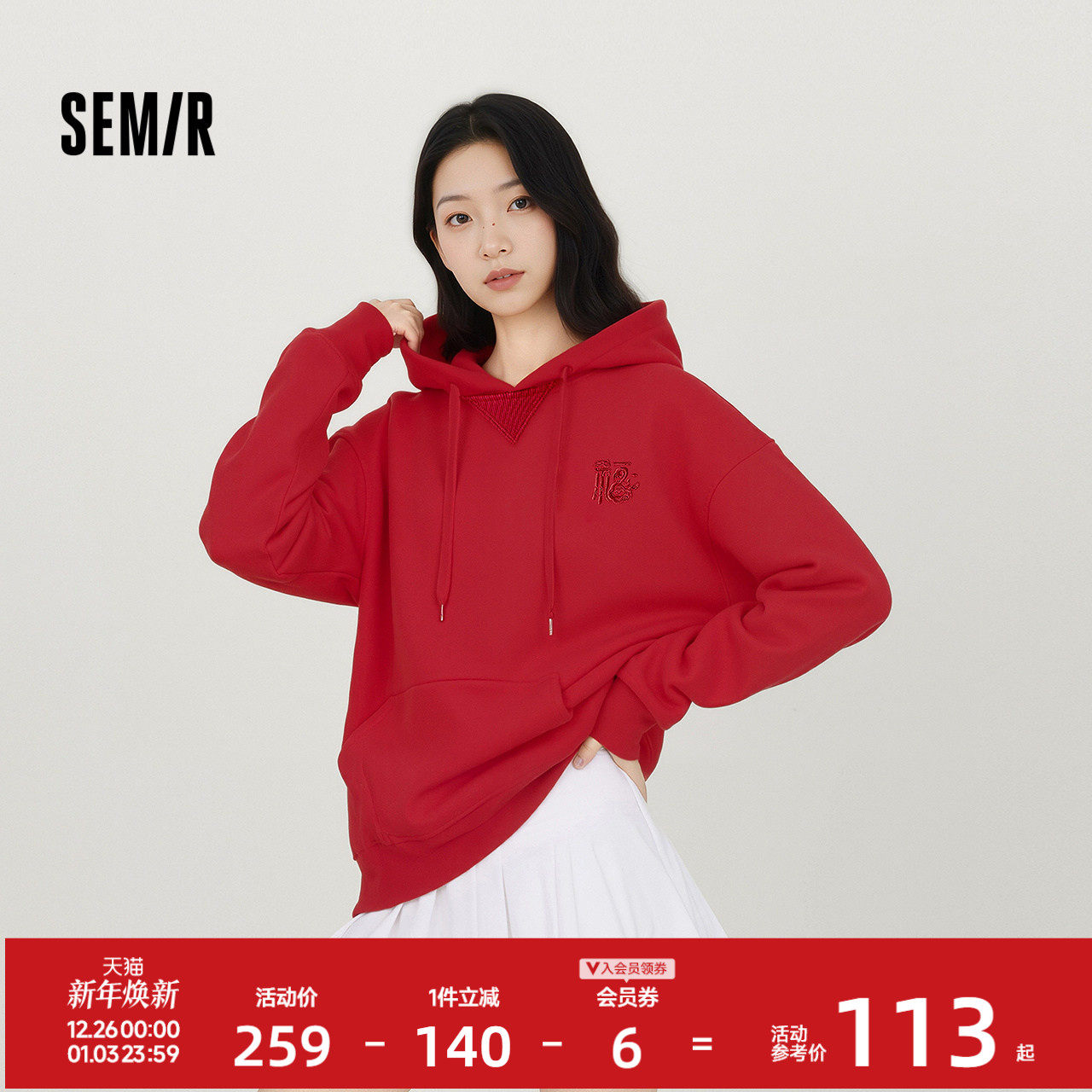 森马张仁华非遗联名卫衣女春中长款宽松连帽绣花新年设计感套头衫