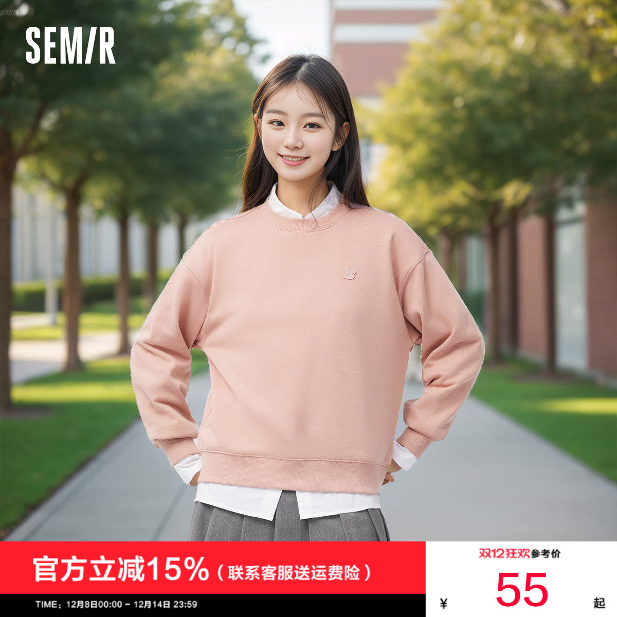 森马卫衣女绣花宽松内搭气质简约休闲女士秋季基础圆领落肩打底衫