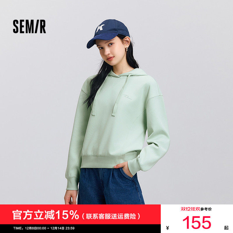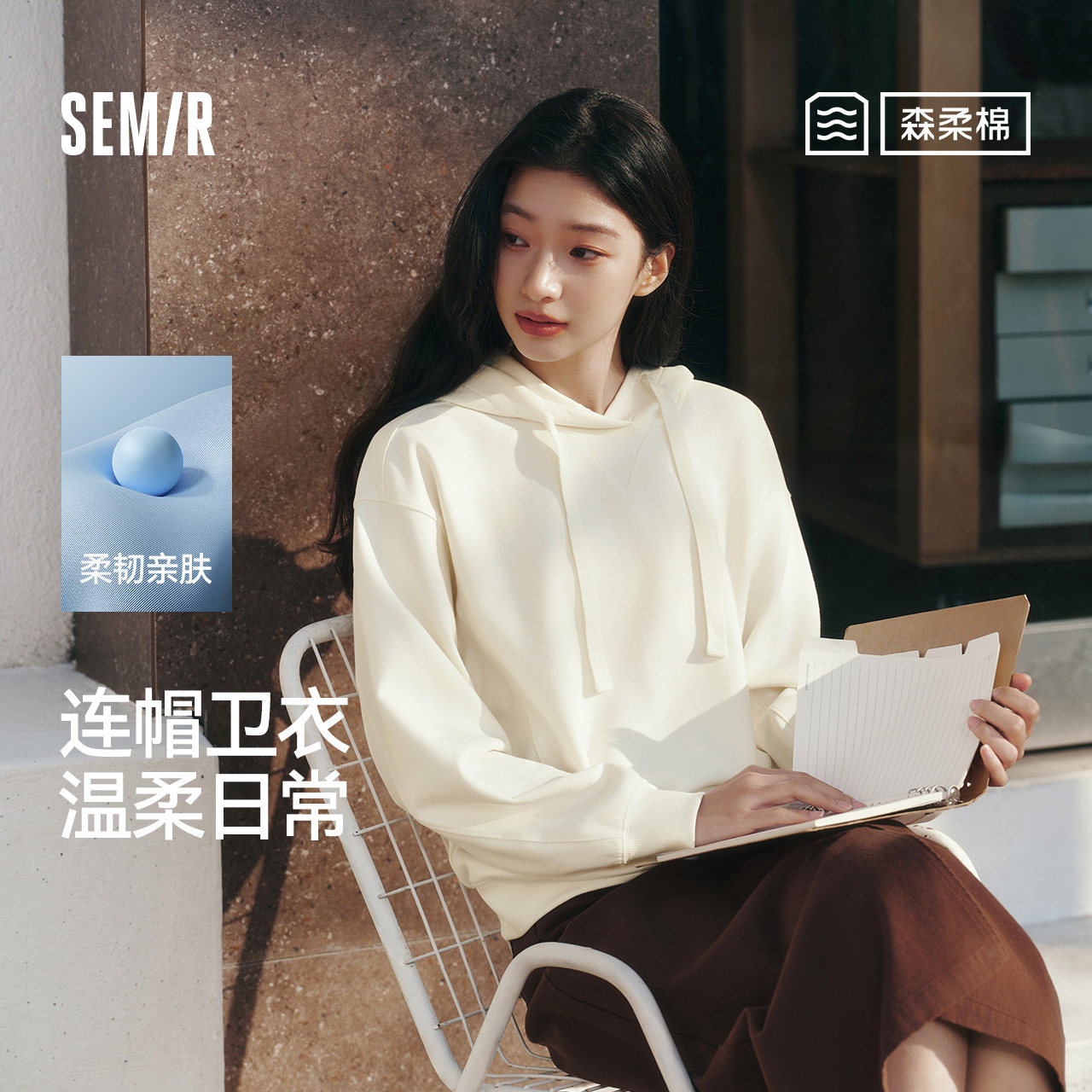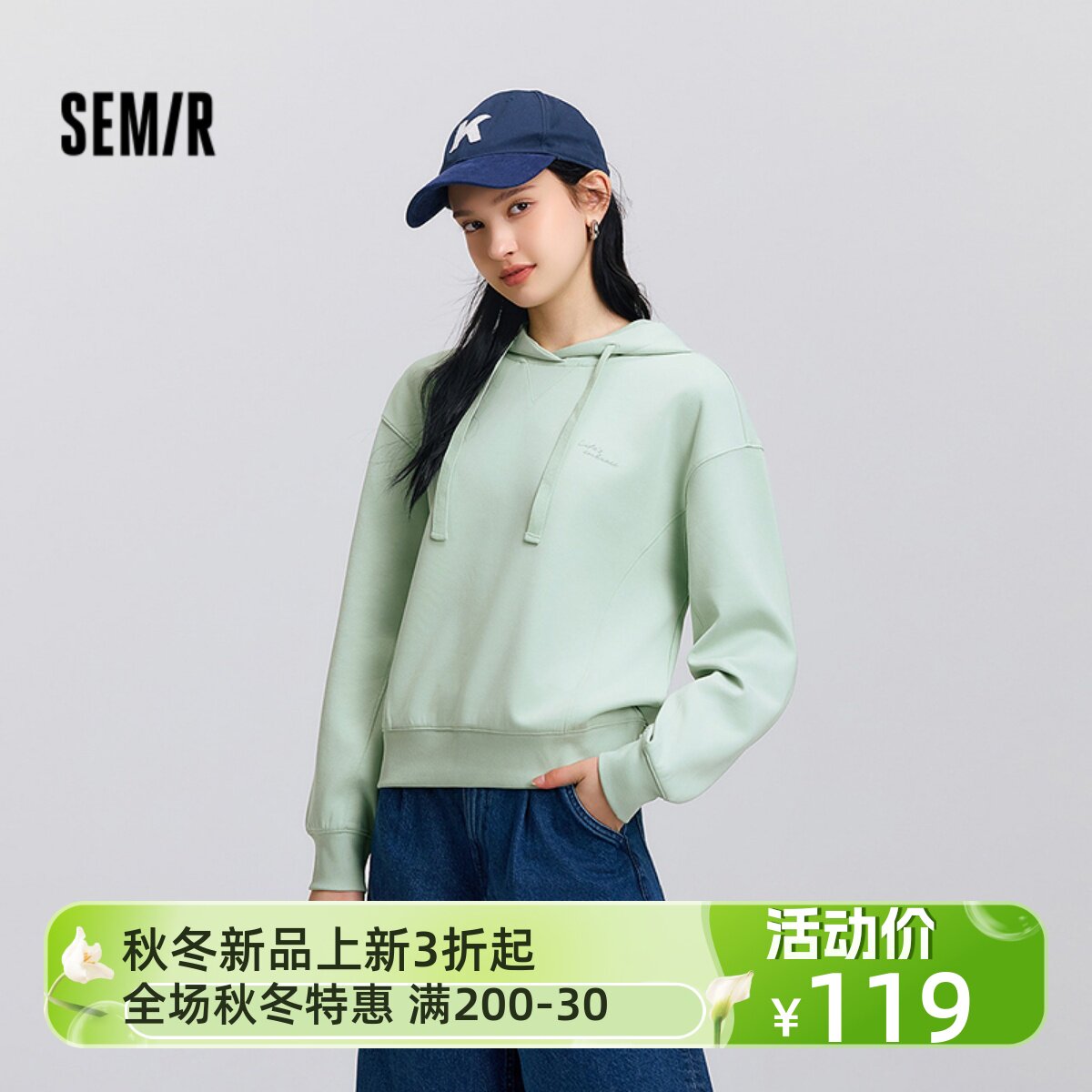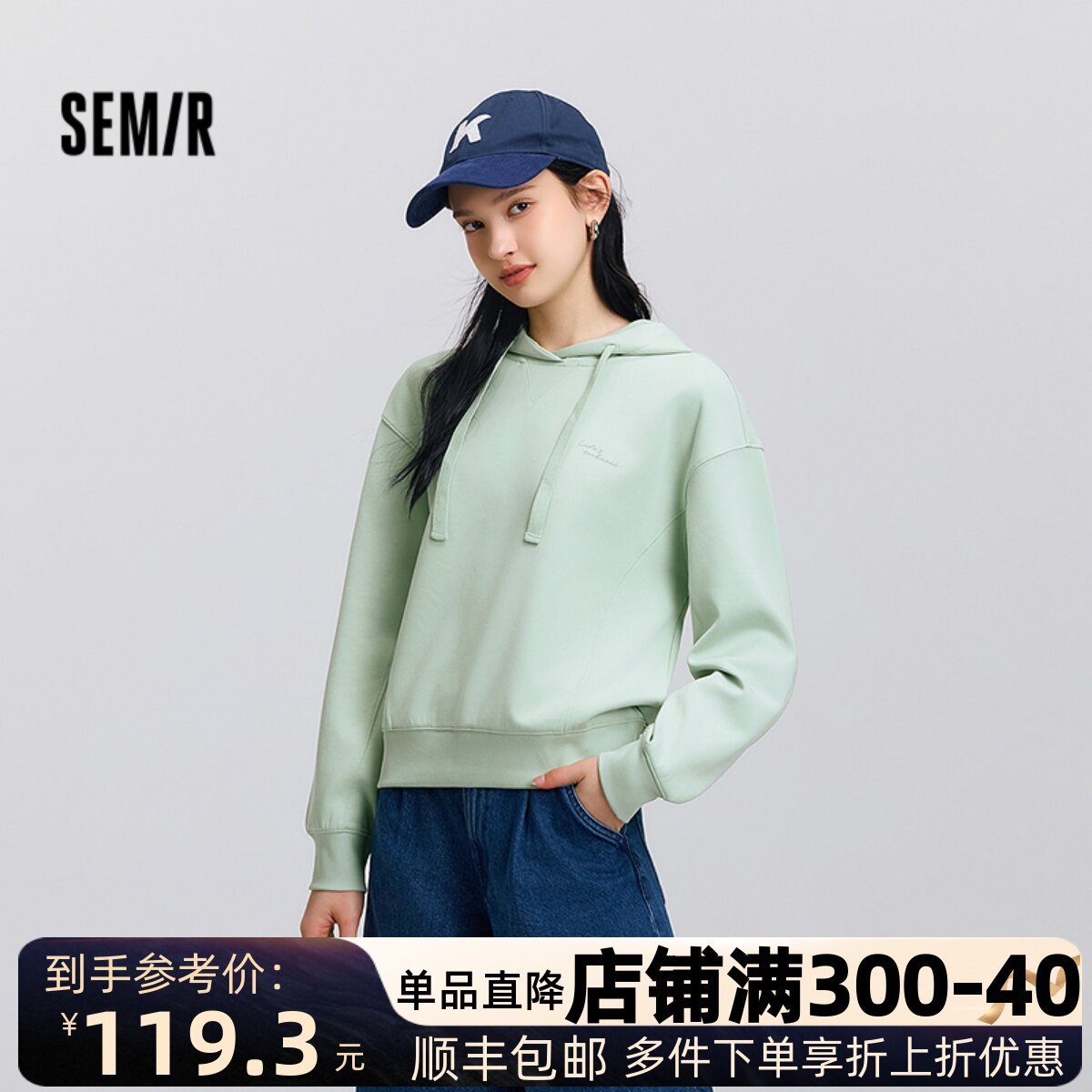 森柔|森马卫衣女春季绣花连帽宽松分割上衣女生简约温柔系套头衫