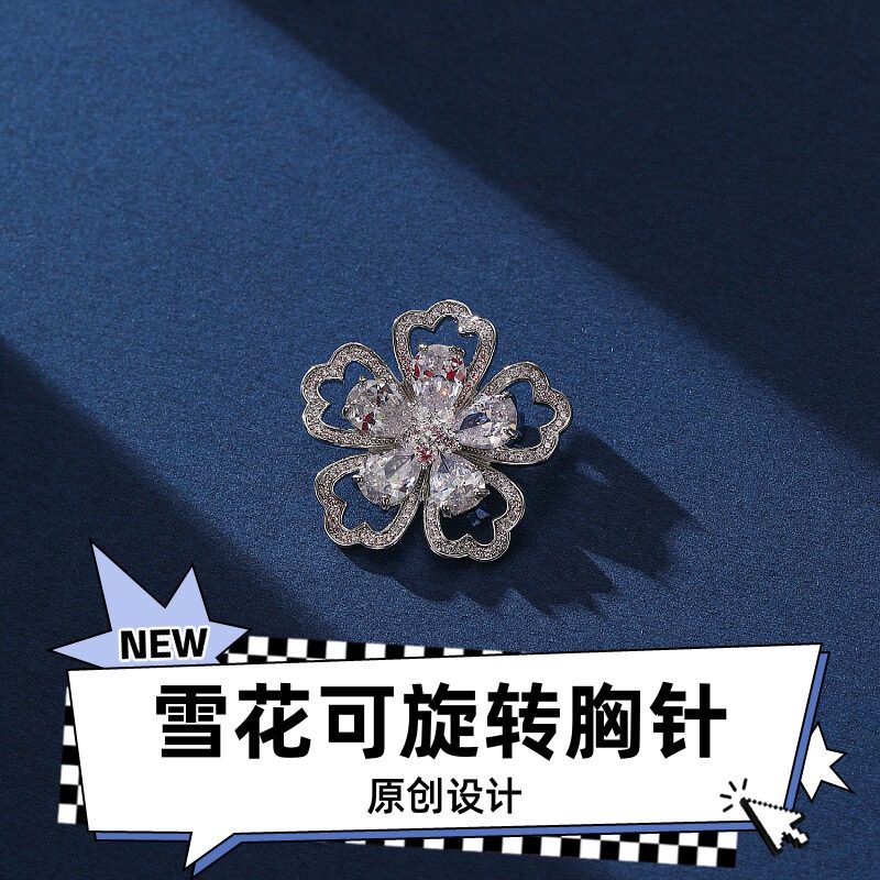 达令 雪花可旋转胸针 女士时尚气质西装别针扣 衣服胸花 毛衣配饰