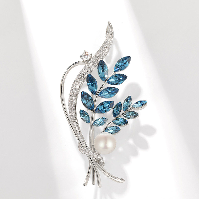 达令 蓝色水晶四叶草高档胸针 女士西装胸花小别针高级感服饰配饰