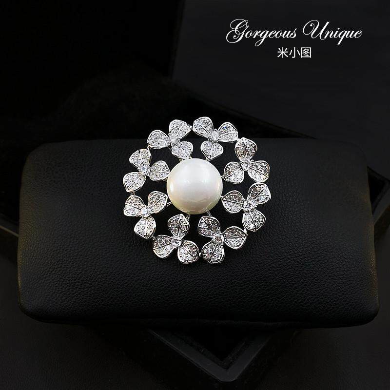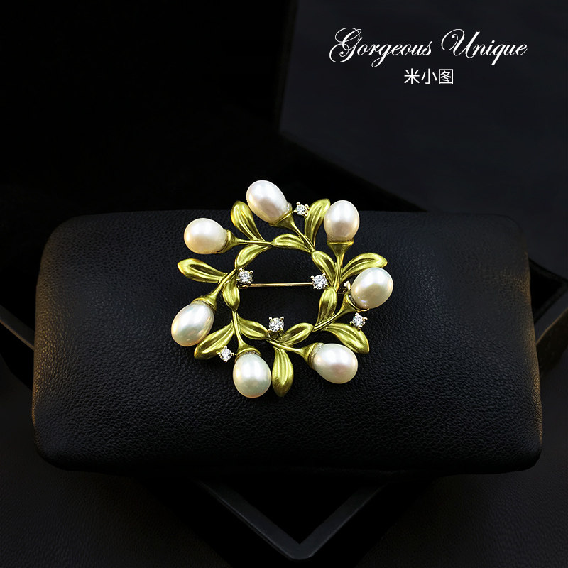 1293 高档珍珠花环胸针 女士优雅气质胸花别针 毛衣配饰开衫扣针