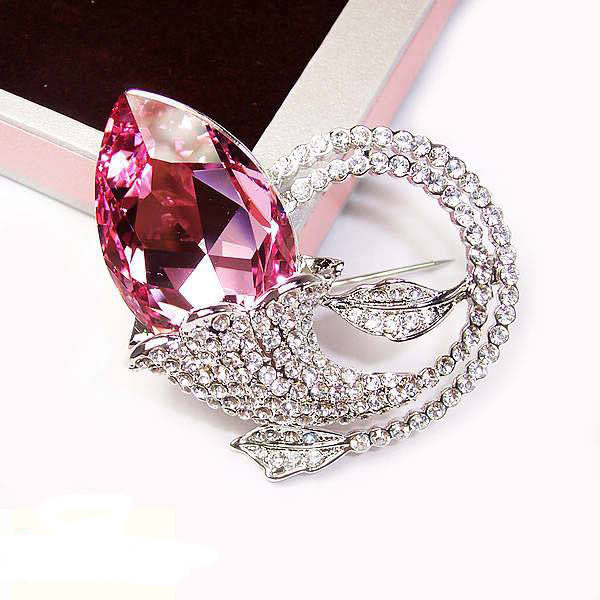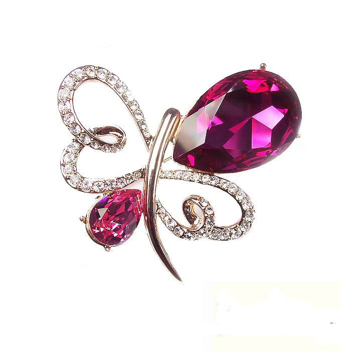 伊泰集团丽晶正品 高档玫红蝴蝶水晶胸针 女新款配饰特惠节日礼物