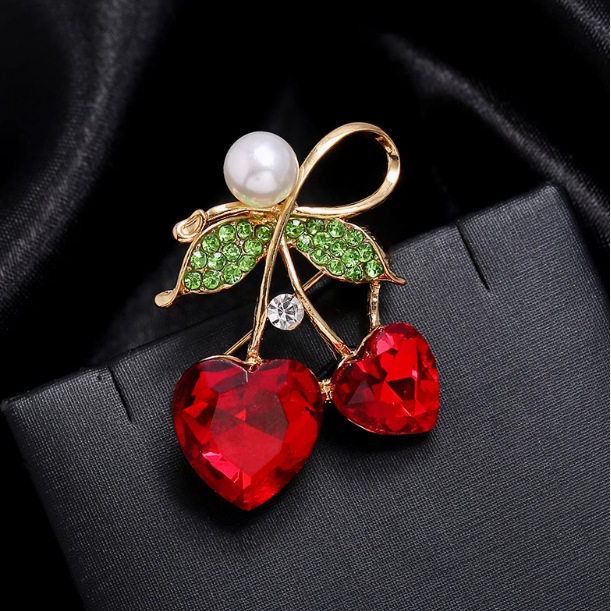 达令 中国红玻璃桃心胸针 女士婚礼胸花 爱心小别针 西装大衣配饰