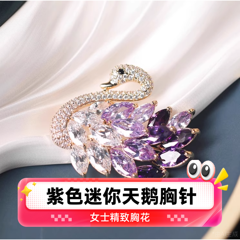达令 紫色迷你天鹅胸针 女士防走光扣 精致胸花 创意别针领针配饰