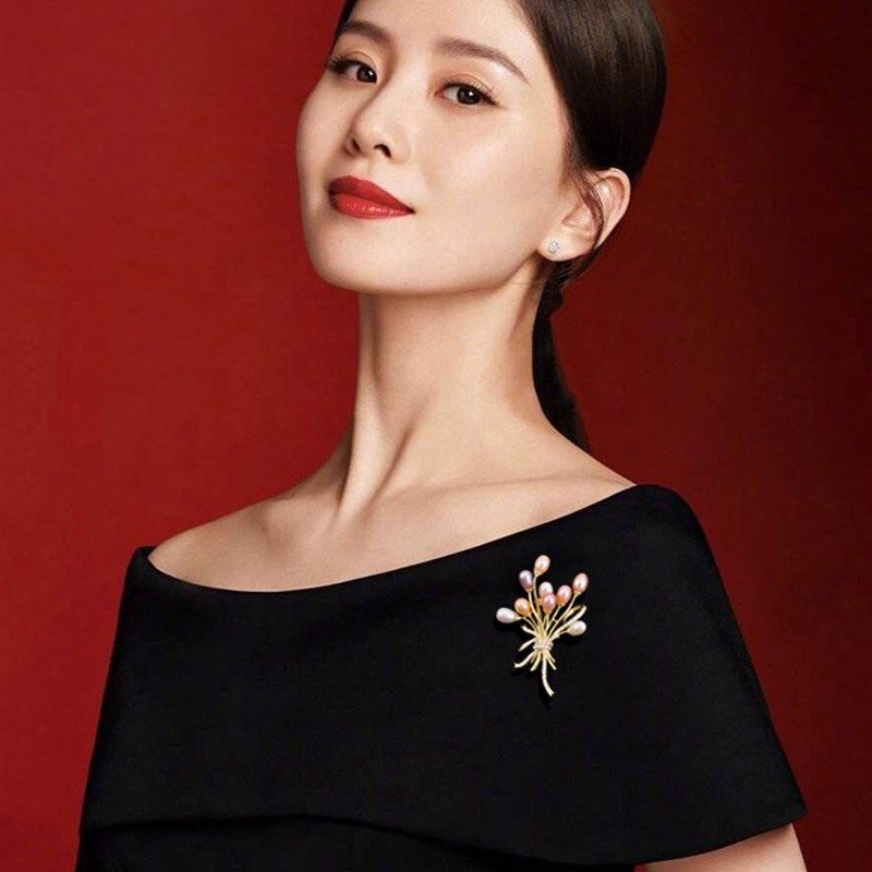达令 满钻珍珠玫瑰花金色胸针 女士时尚胸花高级感花朵衣服装饰品