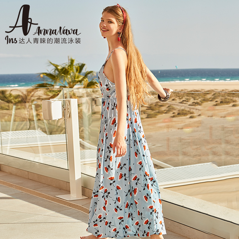 annavava中长款沙滩裙 海边度假显瘦新款美背ins仙女范连衣裙
