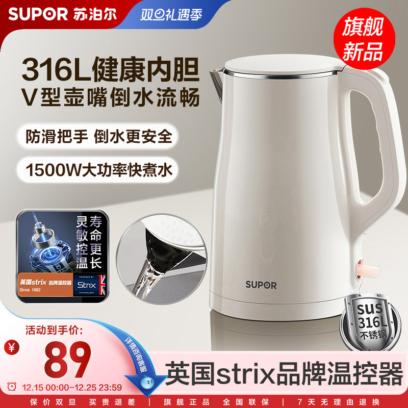 苏泊尔烧水壶2025新款家用电热水壶316不锈钢大容量电热烧开水壶