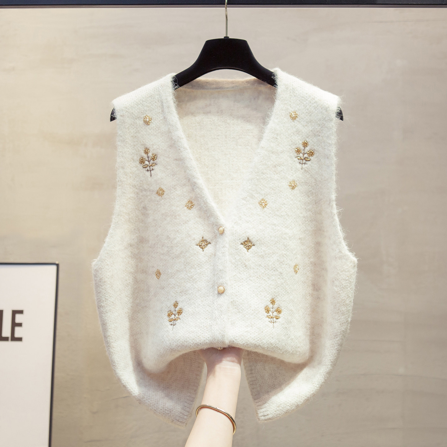 绣花开衫v领针织马甲背心女2026春秋冬新款宽松外穿马夹毛衣坎肩